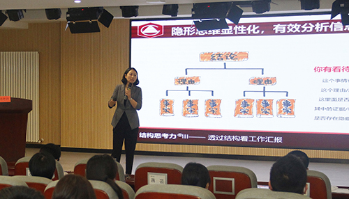 “思考是人類最大的樂趣”。為提高員工思考和表達(dá)能力,建立彼此交流時(shí)共同的思維和語言平臺(tái),提高組織溝通效率,10月23日,集團(tuán)邀請(qǐng)楊秀萍老師為鄭地英才班講授《透過結(jié)構(gòu)看工作匯報(bào)》,集團(tuán)總部及子公司共150余名員工參加。