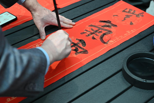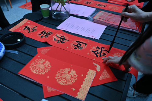 活動(dòng)當(dāng)天,鄭州市文聯(lián)的書(shū)法家們受邀來(lái)到現(xiàn)場(chǎng)。他們個(gè)個(gè)精神飽滿,手執(zhí)毛筆,在一張張紅紙上揮灑自如,書(shū)寫(xiě)著寓意深遠(yuǎn)的新年序言。這些序言既是對(duì)過(guò)去一年的總結(jié),也是對(duì)新年的美好期許。書(shū)法家們的精彩表演贏得了現(xiàn)場(chǎng)觀眾的連連稱(chēng)贊,租戶們紛紛表示:“書(shū)法家們寫(xiě)的字真是太好了!‘福’字看著就喜慶,春聯(lián)的寓意也都非常美好。”