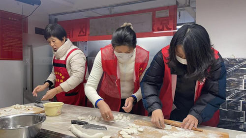 上午,商都控股公司在員工餐廳組織開展了溫馨滿滿的員工包餃子活動。中午,當(dāng)?shù)谝惠嗭溩又笫旌螅晒军h員和志愿者送給在公司附近忙碌的環(huán)衛(wèi)工人、保安保潔人員等,讓他們也共享冬至熱騰騰的餃子。