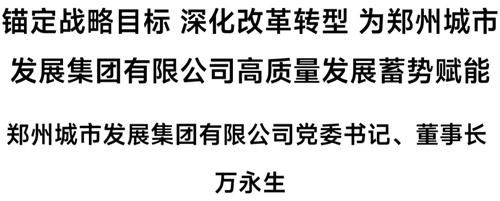 下面,為您推出鄭州城市發(fā)展集團(tuán)有限公司黨委書記、董事長(zhǎng)萬永生署名文章《錨定戰(zhàn)略目標(biāo) 深化改革轉(zhuǎn)型 為鄭州城市發(fā)展集團(tuán)有限公司高質(zhì)量發(fā)展蓄勢(shì)賦能》——