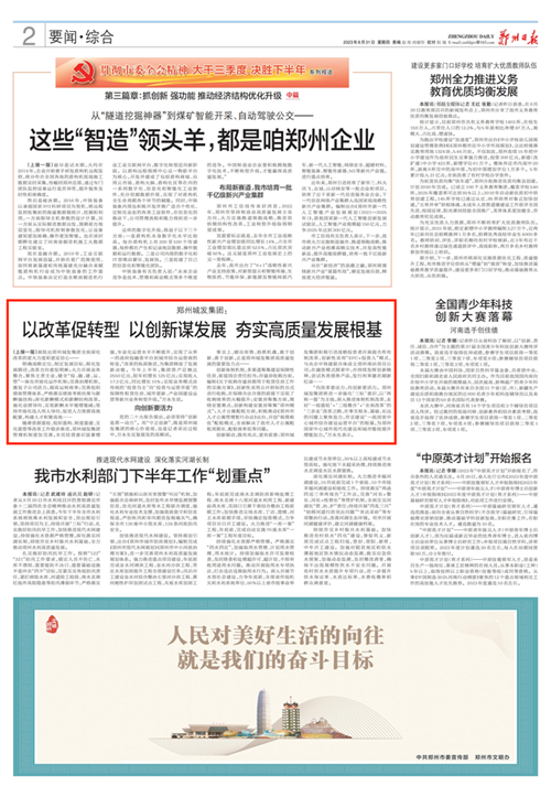 事實上,順應(yīng)形勢、搶抓機遇,敢于創(chuàng)新、善于創(chuàng)新,正是鄭州城發(fā)集團高質(zhì)量發(fā)展的重要發(fā)力點——
