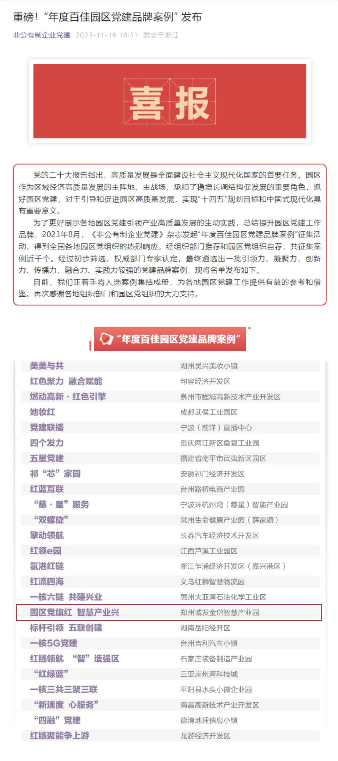 11月16日,由《非公有制企業(yè)黨建》雜志發(fā)起的“年度百佳園區(qū)黨建品牌案例”征集活動遴選結果揭曉。鄭州城發(fā)集團“園區(qū)黨旗紅 智慧產業(yè)興”基層黨建“書記項目”從近千個入圍案例中脫穎而出,成功入選“年度百佳園區(qū)黨建品牌案例”。