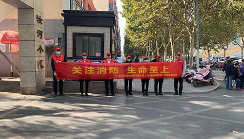 在桐柏路汝河路交叉口、周邊商鋪及汝河小區(qū),志愿者向來往的居民群眾發(fā)放消防宣傳材料,宣傳“關(guān)注消防、生命至上”的主題思想,同時提醒居民加強日常用火用電安全意識、不在樓道內(nèi)擺放電動車及充電、注意取暖設(shè)備的安全使用等事項,并重點向社區(qū)的老年居民和小朋友講解家庭消防安全知識及家電的安全使用方法。