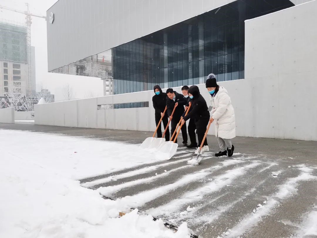 全力以赴,分秒必爭。4日下午突如其來的降雪,給第二天的檢測工作帶來了極大困難。面對艱巨的任務(wù),為切實(shí)做好全員核酸檢測準(zhǔn)備工作,保障參檢群眾生命財(cái)產(chǎn)安全。鄭地發(fā)展公司作為國企,危急關(guān)頭彰顯國企擔(dān)當(dāng),第一時(shí)間作出動(dòng)員號召,由黨員同志帶頭,迅速組建了一支30余人的志愿服務(wù)隊(duì),連夜開始了場地清理布置工作,調(diào)配防疫物資、準(zhǔn)備消毒液、架設(shè)引導(dǎo)牌、拉設(shè)警戒線、張貼掃碼紙、擺放檢測臺(tái),對商務(wù)服務(wù)中心進(jìn)行全面消殺,同時(shí)組織新加入的志愿者開展模擬演練,幫助大家快速熟悉服務(wù)工作,保證各個(gè)環(huán)節(jié)有條不紊。5日清晨,志愿者們早早來到商務(wù)服務(wù)中心現(xiàn)場清理積雪,僅僅半個(gè)小時(shí),園區(qū)便露出了干凈整潔的路面,為迎接檢測做好了充分準(zhǔn)備。
