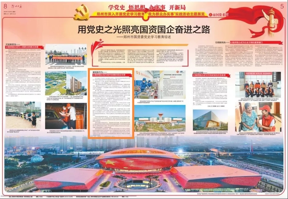 剛剛過去的2021年是我們黨建黨一百周年。在建黨百年的重要時(shí)刻,黨中央深謀遠(yuǎn)慮,鑒往知來,在全黨深入開展黨史學(xué)習(xí)教育活動,從百年黨史中汲取新時(shí)代趕考路的智慧和力量。1月25日,鄭州市深入開展黨史學(xué)習(xí)教育“我為群眾辦實(shí)事”實(shí)踐活動主題展覽之市國資委篇《用黨史之光照亮國資國企奮進(jìn)之路--鄭州市國資委黨史學(xué)習(xí)教育綜述》被《鄭州日報(bào)》刊發(fā)、《人民日報(bào)》客戶端轉(zhuǎn)載。